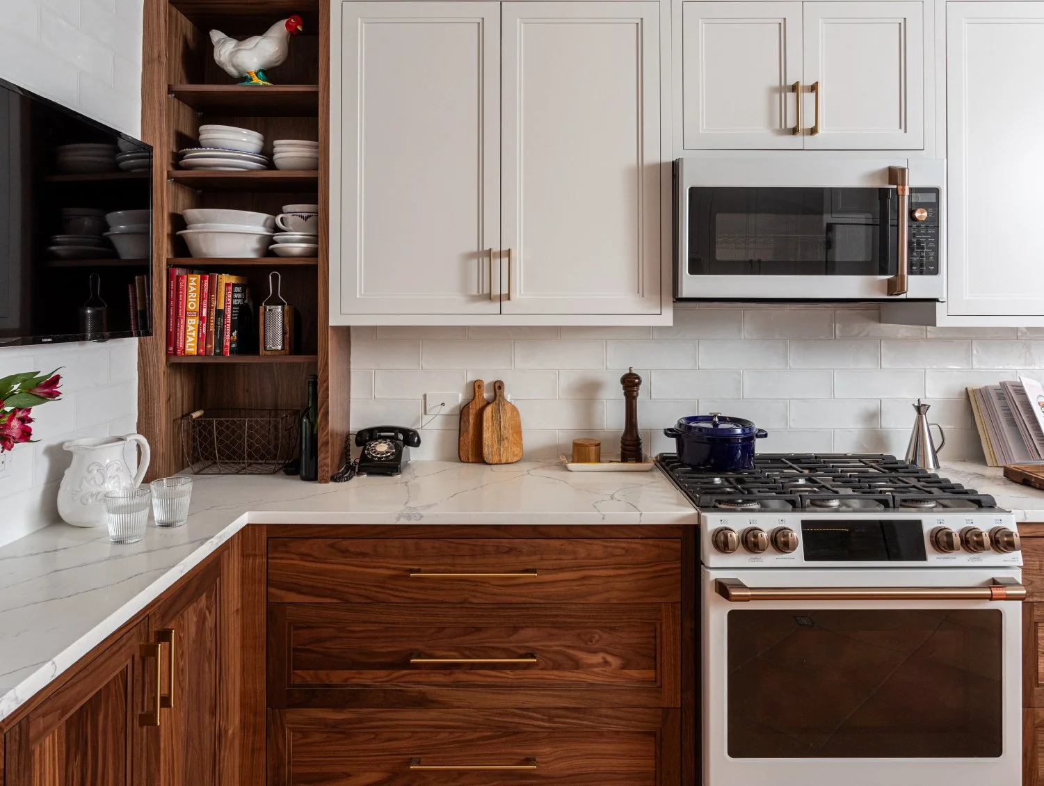 • Your space can support visual contrast (larger kitchen, open layout)
